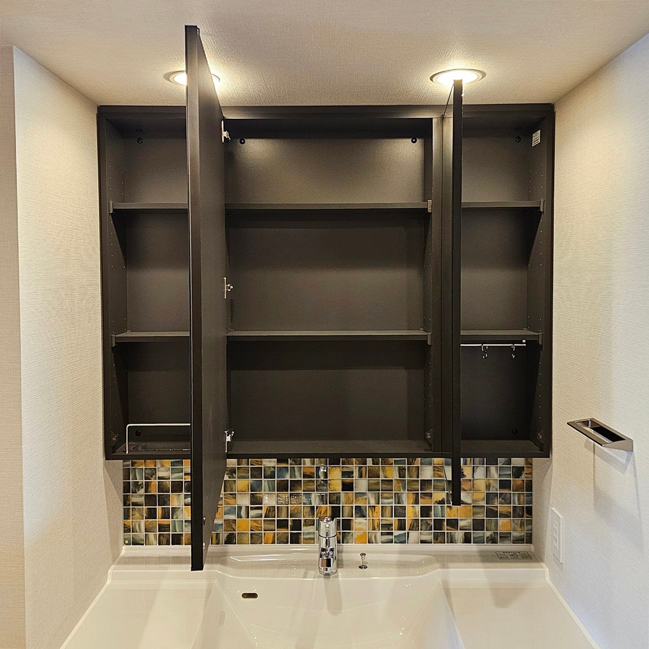 【PKB23】タカラスタンダード製 ミラーキャビネット付き洗面化粧台 三面鏡キャビネット
