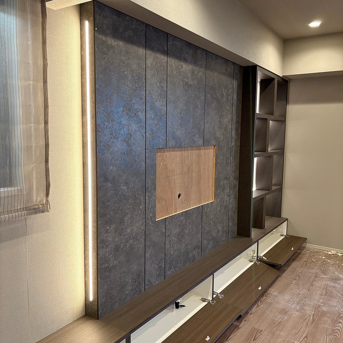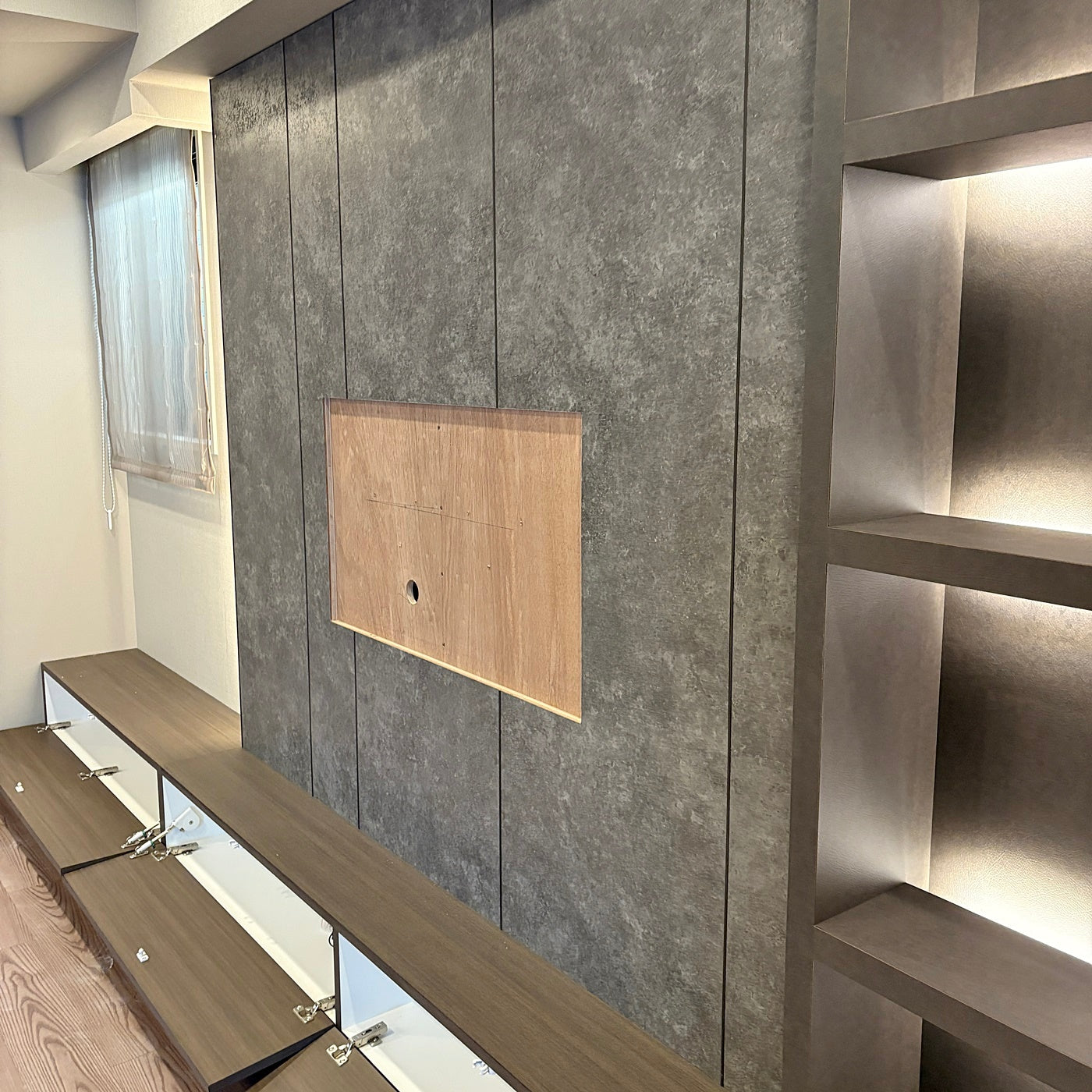 ★造作のテレビボードとウォールシェルフのセット