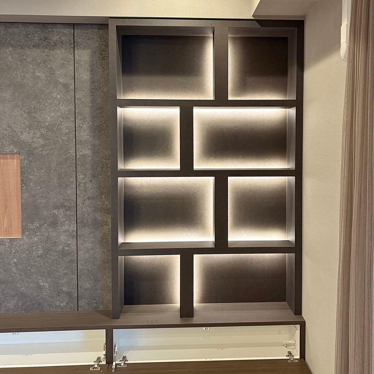 ★高級感プラスの照明付き造作ウォールシェルフ