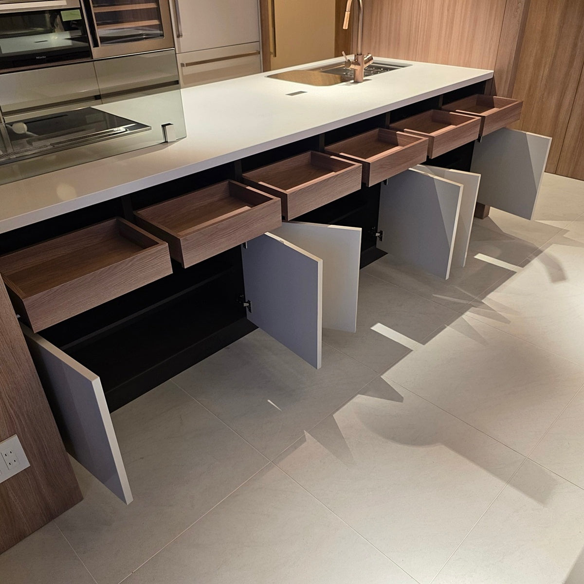 ★充実の収納力!対面収納付きペニンシュラ型システムキッチン